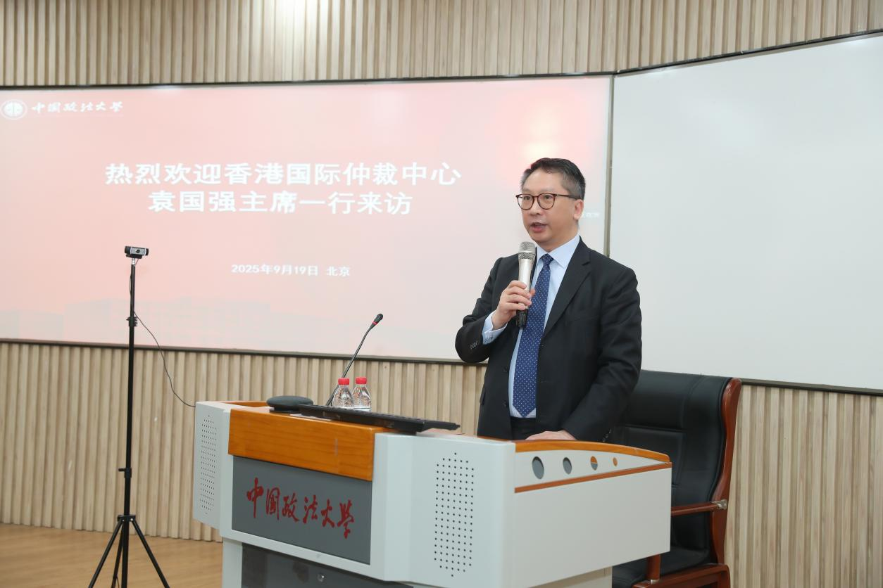 中国政法大学副校长卢春龙教授在致辞中表示,此次公开课是我校与香港国际仲裁中心深化合作的重要体现,有助于推动涉外法治人才培养和学科建设。他强调,我校将继续支持与国际一流仲裁机构的合作,搭建更多高水平交流平台,助力学生在国际仲裁领域成长成才。