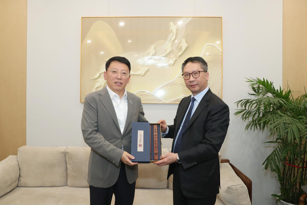开班仪式前,校党委书记姜泽廷与袁国强主席一行进行会面。