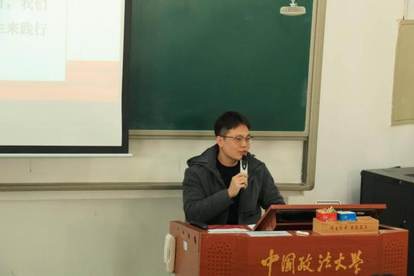 学院团委书记何新宇就习近平总书记重要讲话和党的二十届四中全会精神进行了系统领学。他表示,习近平总书记始终心系青年成长,嘱托青年要坚定理想信念、紧跟党的步伐,将个人奋斗融入国家发展伟业。他勉励同学们精读经典原著,提升辩证思维能力,正确对待人生际遇,在实践磨砺中成长成才。在阐述党的二十届四中全会精神时,他系统回顾了"十四五"时期的辉煌成就,深刻阐释了"十五五"时期的战略方位与使命任务,强调当前必须牢牢把握重大发展机遇,高度重视实体经济发展与制度型开放,涉外法治人才应在国际规则制定、跨境法律服务等关键领域展现新作为、作出新贡献。