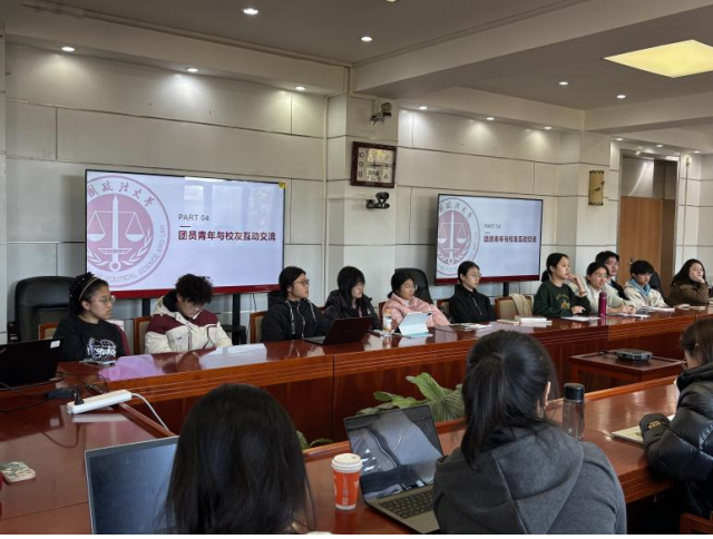 为深入学习贯彻习近平总书记考察中国政法大学重要讲话精神和党的二十届四中全会精神,引导全体团员青年深学细悟习近平总书记重要讲话的核心要义与全会精神,自觉将思想和行动统一到党中央决策部署上来,2025年11月17日,国际法学院2502班团支部于主楼五层会议室举行“牢记殷切嘱托 勇担法治使命”主题团日活动。国际法学院本科2025级辅导员关舒丹、辅导员助理盛燕琦,民商经济法学院1502班校友张辰辰、冯建达,以及团支部全体团员青年一同参加了活动。活动由团支部书记程程主持。