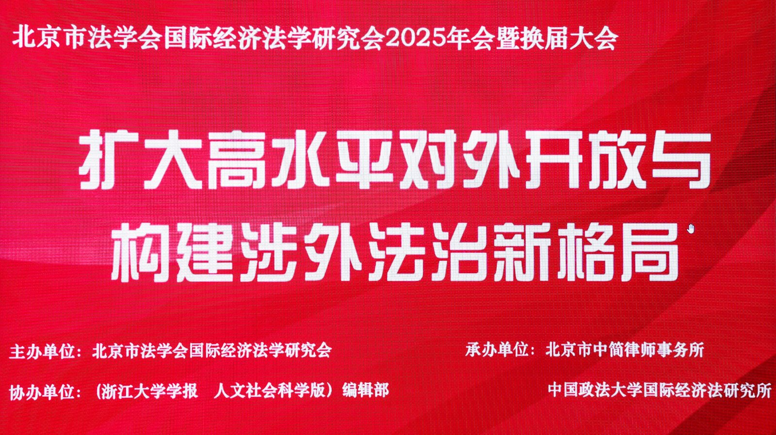 2025年11月16日,由北京市法学会国际经济法学研究会主办,中国政法大学国际法学院/涉外法治学院国际经济法研究所、北京市中简律师事务所联合承办,浙江大学学报(人文社会科学版)编辑部协办的“扩大高水平对外开放与构建涉外法治新格局”2025年会暨北京市法学会国际经济法学研究会换届大会在中国政法大学海淀校区科研楼二层学术讲堂顺利召开。本次年会共有来自各高校、科研机构、企事业单位的180余人参会。