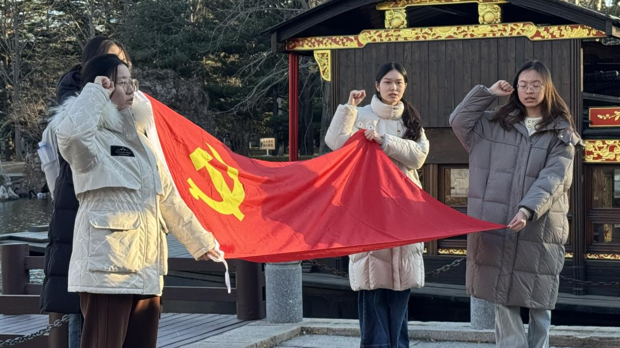 随后,师生党员在象征中国革命源头的“红船”前举行庄严的宣誓仪式。面对鲜红的党旗,在本科生第一党支部组织委员陈晓桐同学的领誓下,全体党员举起右拳,重温入党誓词。“我志愿加入中国共产党”的誓言铿锵有力,在红船旁久久回荡。在国家宪法日于“红船”这一特殊地点重温初心,使全体师生党员接受了一次深刻的精神洗礼。大家深切体会到,中国共产党的领导是中国特色社会主义法治最根本的保证,红船精神所蕴含的首创、奋斗、奉献内涵,与新时代法治工作者所必需的理想信念和责任担当一脉相承。这既是一次对党员身份与使命的再确认,也是一次将尊崇宪法、忠诚于党的信念融入血脉的再教育。