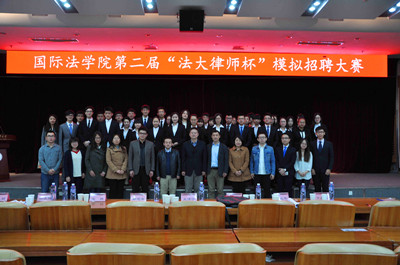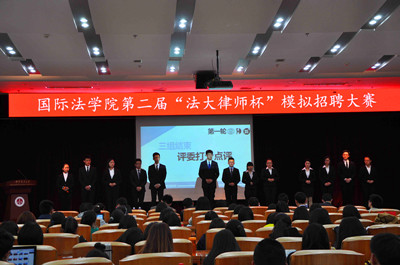 随着法学就业压力的逐年升高,掌握一定的职场应聘技巧成为一种必然。为了给广大同学积累一定的职场面试技经验,由中国政法大学国际法学院主办,中国政法大学国际法学院学生会职业拓展部承办的第二届“法大律师杯”模拟招聘大赛决赛于3月25日晚7:00在学生活动中心学术报告厅举行。