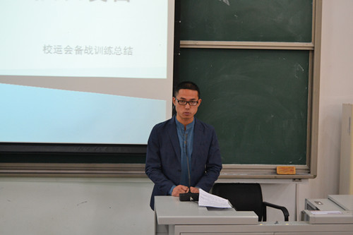 最后,顾永强老师进行了总结发言。顾老师强调了学院对运动会的重视并衷心祝愿运动健儿们在春季运动会上取得好成绩。同时,顾老师提出三点“有效”,第一是有效的训练,第二是有效的协作,第三是有效的保障。他强调:运动员的努力、有效的组织以及有效的后勤保障都是致胜因素,希望同学们勇创辉煌,为院争光。