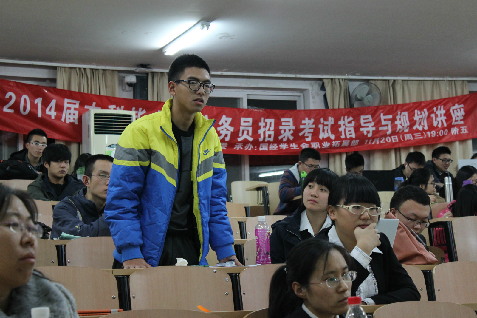 国际法学院2014届本科毕业生公务员招录考试指导与规划讲座于2013年11月20日在阶5举行。此次活动由国际法学院分团委主办,国际法学院学生会职业拓展部承办。出席此次活动的嘉宾有昌平法院政治处副主任王之学、法官王瑞燕、国际法学院分团委书记杨俊丽。