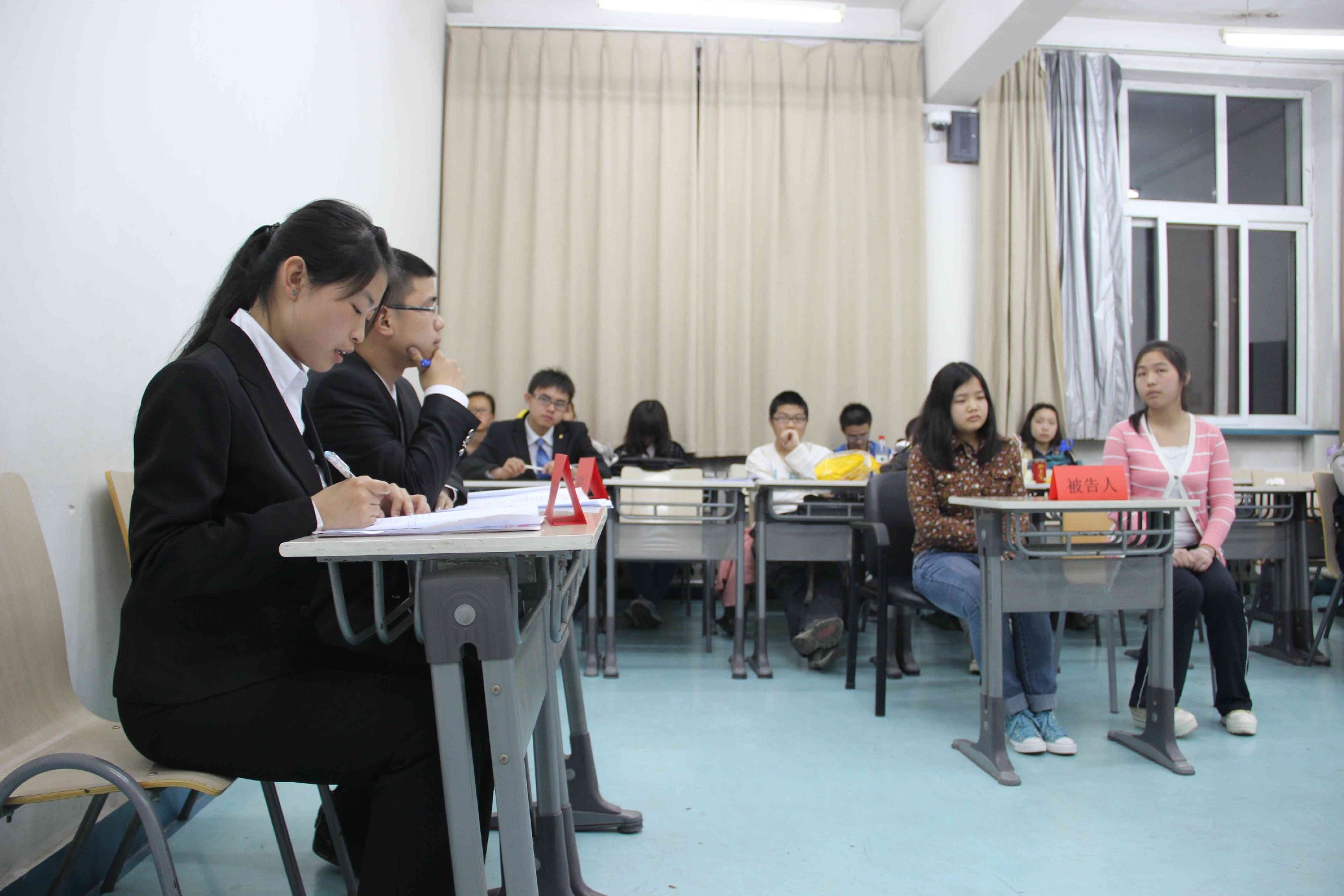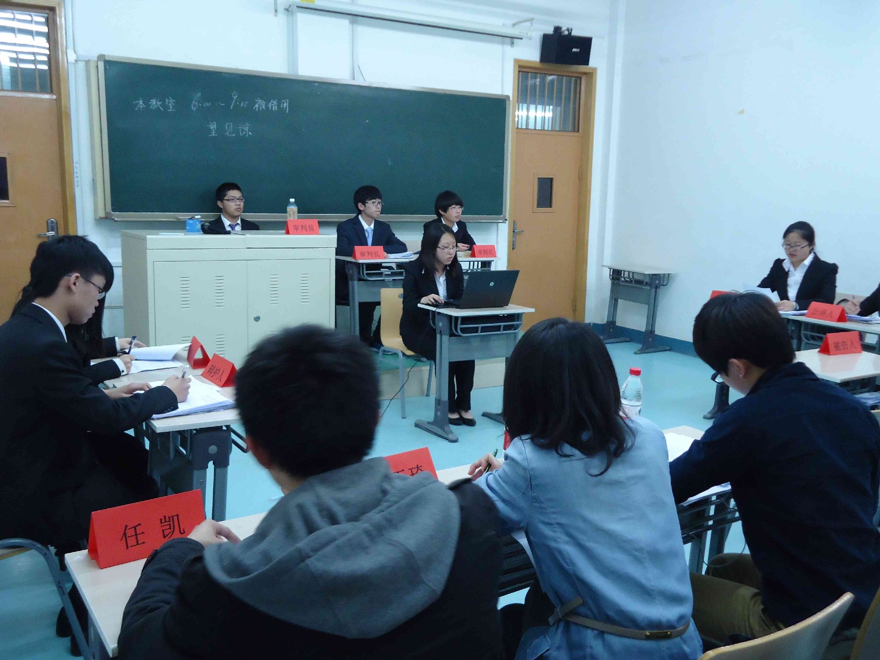 2013年4月25日晚上7:00,万里随法训练营的模拟法庭A组比赛在端升楼406举行。