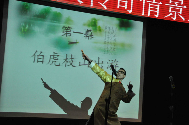 接下来四班的《唐伯虎点秋香之法大奇缘》则又是一个喜剧故事。唐伯虎救了被人打劫的秋香,对秋香一见钟情。这本是一个才子佳人的浪漫故事,但是由于秋香由一个高大壮实的男生扮演,就使得故事引人发笑了。扮演唐伯虎的演员更是凭借扎实的表演,获得了“最佳演员”的称号。