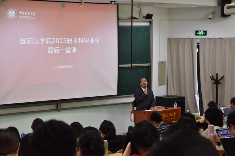 On the afternoon of June 6th, 2025, the "Last Lecture" for the Class of 2025 undergraduate graduates of the School of International Law CUPL / School of Foreign-Related Rule of Law CUPL was held in Lecture Hall 5 of the Changping Campus. In attendance were the Dean of the International Law School CUPL/ School of Foreign-Related Rule of Law CUPL, representatives from the graduating class faculty, and instructors for the graduating class.